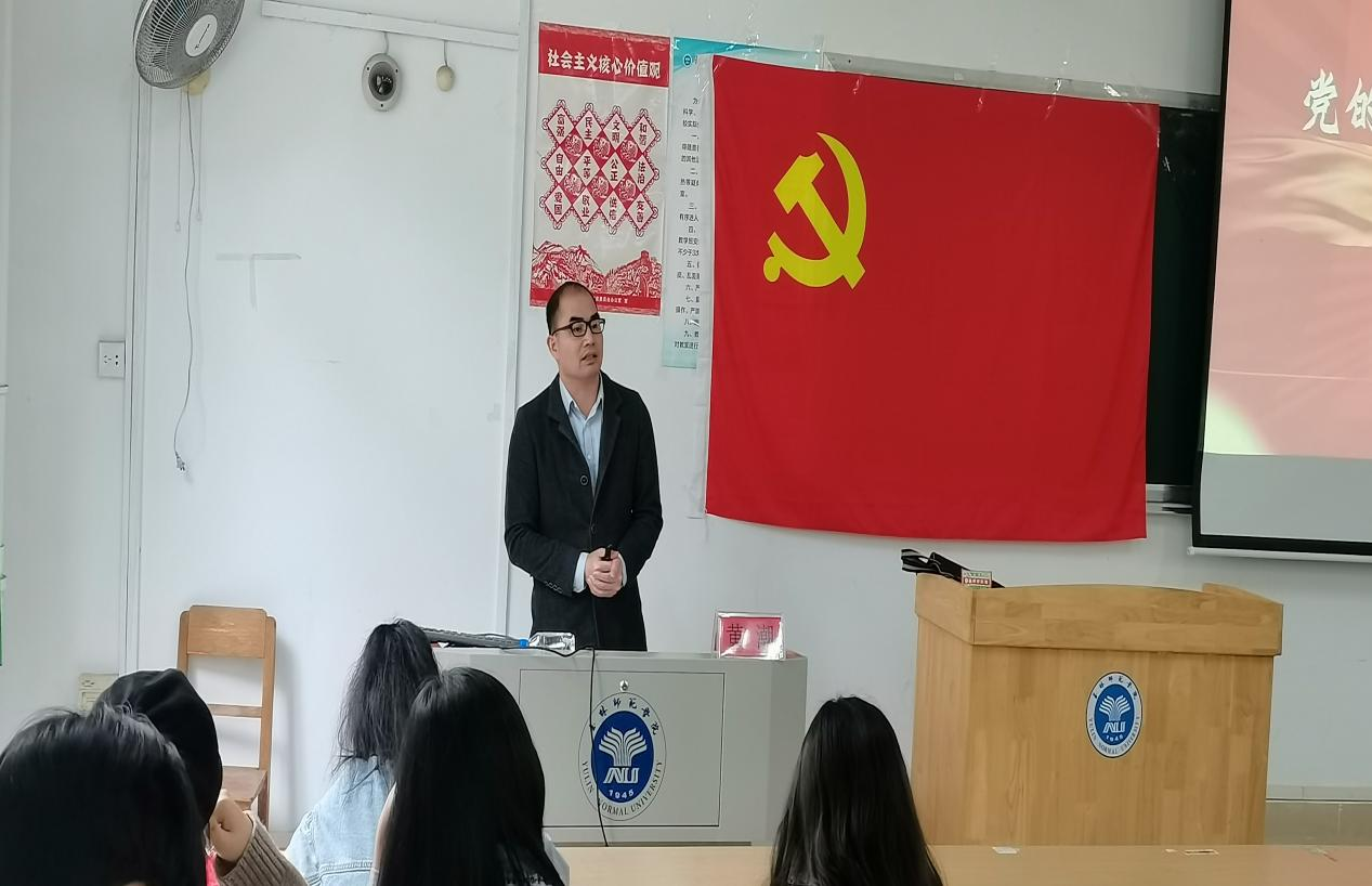 为做好入党积极分子培养教育工作,不断吸收优秀入党积极分子加入党组织,4月25日下午,我院联合美术与设计学院在我校东校区厚德3-203教室开展专题党课。本次课程由我院党委副书记兼副院长黄潮主讲,我院和美术与设计学院第二十四期入党积极分子培训班全体学员到场听党课。