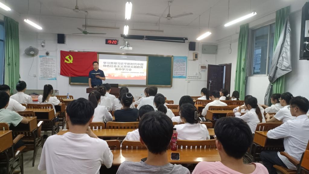 我院学生第三党支部在厚德3204教室组织开展了学习贯彻习近平新时代中国特色社会主义思想主题教育集中学习会。会议由支部副书记廖燕莹主持,全体在校生党员参加。