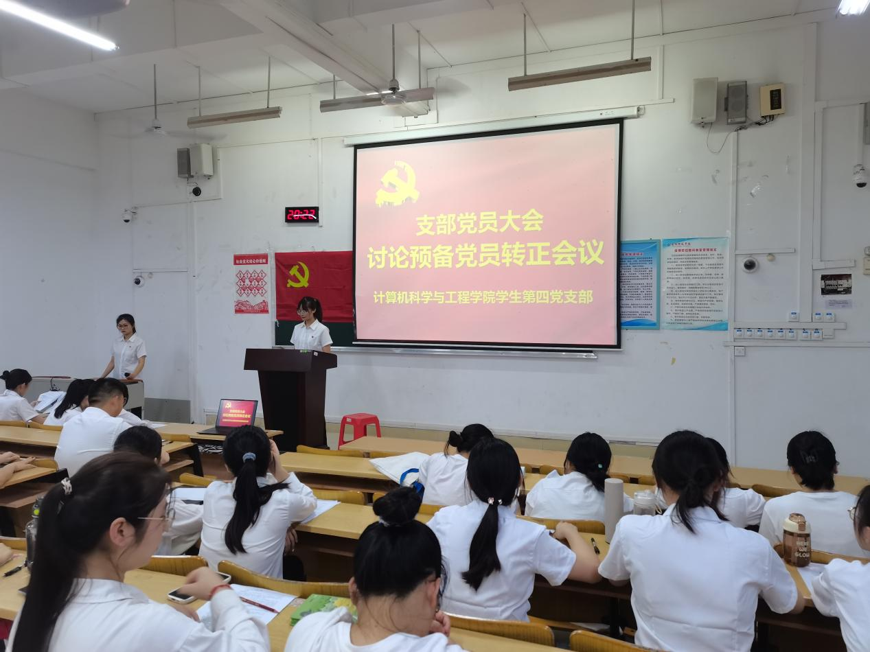 我院学生第四党支部于厚德楼2103教室召开讨论预备党员转正支部大会。会议由支部书记邱杰主持,支部全体党员参加。