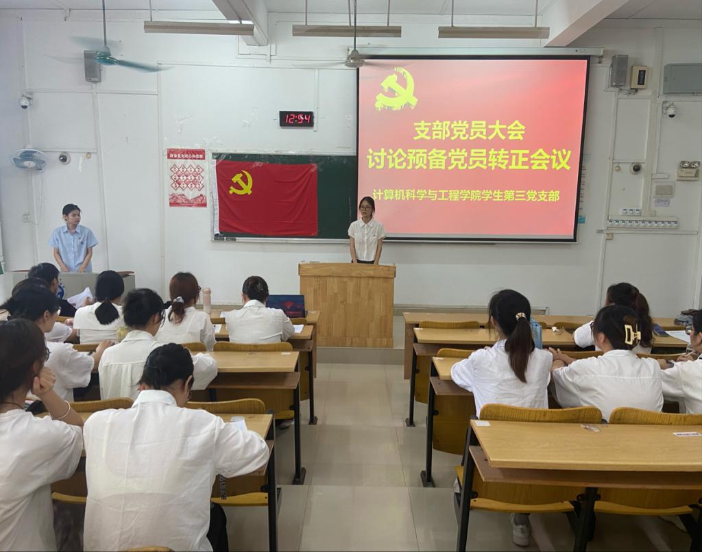 我院学生第三党支部于我校东校区厚德楼3204进行10名预备党员转正会议,支部书记丘海冰以及全体党员参加,支部副书记廖燕莹主持。
