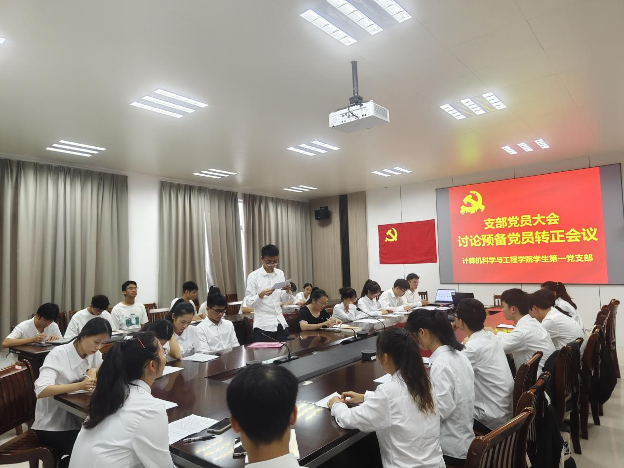 我院学生第一党支部于厚德楼2401教室召开党员大会讨论预备党员转正问题,会议由该支部书记饶沛主持,全体党员参加。会议伊始,饶沛介绍了会议流程。随后,12名预备党员汇报一年来各方面的情况,包括思想、学习、工作、生活、获奖情况等内容,并对其能否入党表明意见,接着支部委员会报告了对预备党员的审查情况。与会党员充分讨论并发表意见,各正式党员进行无记名投票表决。最后,饶沛对转正党员提出期望:一是要始终以党员的标准规范严格要求自己,使自己真正成为合格的共产党员,二是要不断学习,不断提升自己,只有不断加强政治理论和业务知识的学习,才能具有较高的政治理论素质、坚定正确的政治方向。