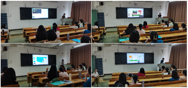 会上,四位教师分享了他们在教学实践中的创新成果,这些成果涉及创业、健康生活等主题,以及一款引人注目的游戏化课堂测评工具。首先,副主任周惠敏介绍了中国农村青年致富带头人推广大使李子柒的创业经历,以及她如何通过传播中国传统文化在全球范围内赢得了关注。这不仅丰富了学生对创业的理解,也激发了他们对传统文化的兴趣和探索欲望。其次,刘培节老师分享了其在机电比亚迪班的大学英语课上介绍创业主题时,特别聚焦于比亚迪企业案例,引起了学生们的广泛兴趣和深入思考。然后,徐秋月老师引入了“脆皮大学生”的热门话题。通过与学生互动讨论,将健康生活的重要性与年轻人的实际生活联系起来,增强了学生的认知和实践意识。最后,郝欣然老师介绍了一款引人注目的游戏化课堂测评工具。该工具结合了游戏元素和课堂测评,使得课堂变得生动有趣,学生们能够更加积极参与,提高学习效率。