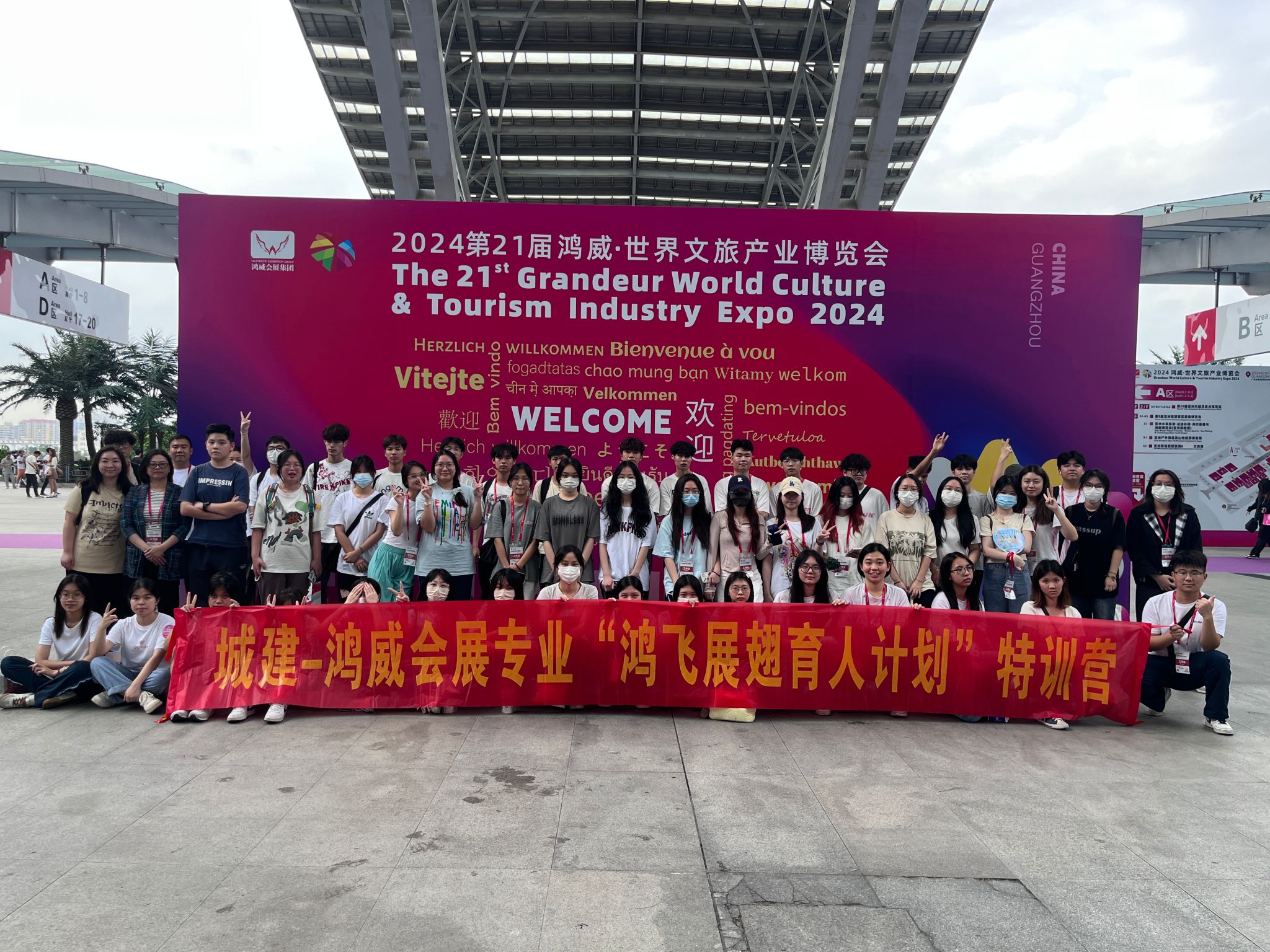 5月8日至12日,数字商贸学院选派了会展管理、商务英语和日语等专业的订单班共55名学生及4名会展专业教师,一同前往广州琶洲国际会展中心。在那里,他们为广东鸿威国际会展集团有限公司举办的世界文旅博览会提供了专业技术服务。该技术服务项目已连续运行8年,并以“鸿飞展翅育人特训营”作为实施实践教学的平台,实现了技术服务和实践教学的有效融合,成为了我院会展、商英学生校外实践教学的重要环节。