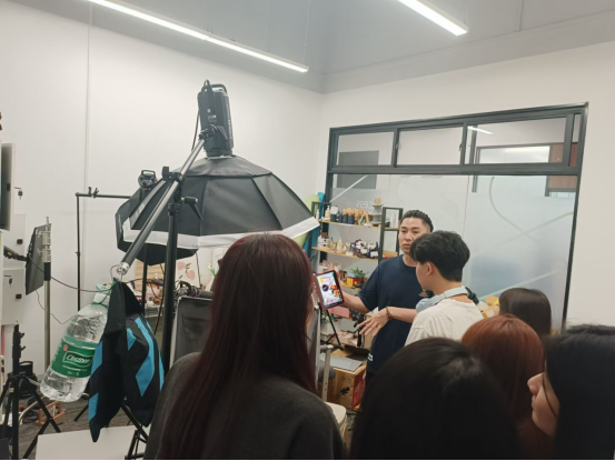 在现场教学过程中,广州人从众信息科技有限公司总经理刘洪彬为同学们详细介绍了公司的业务模式、技术架构以及未来发展方向。同学们在专业人士的指导下,参与了直播间的搭建、选品、策划、运营等各个环节的实际操作。通过亲手操作,同学们对直播电商的各个环节有了更加深入的理解,也对自己的专业方向有了更加清晰的认识。