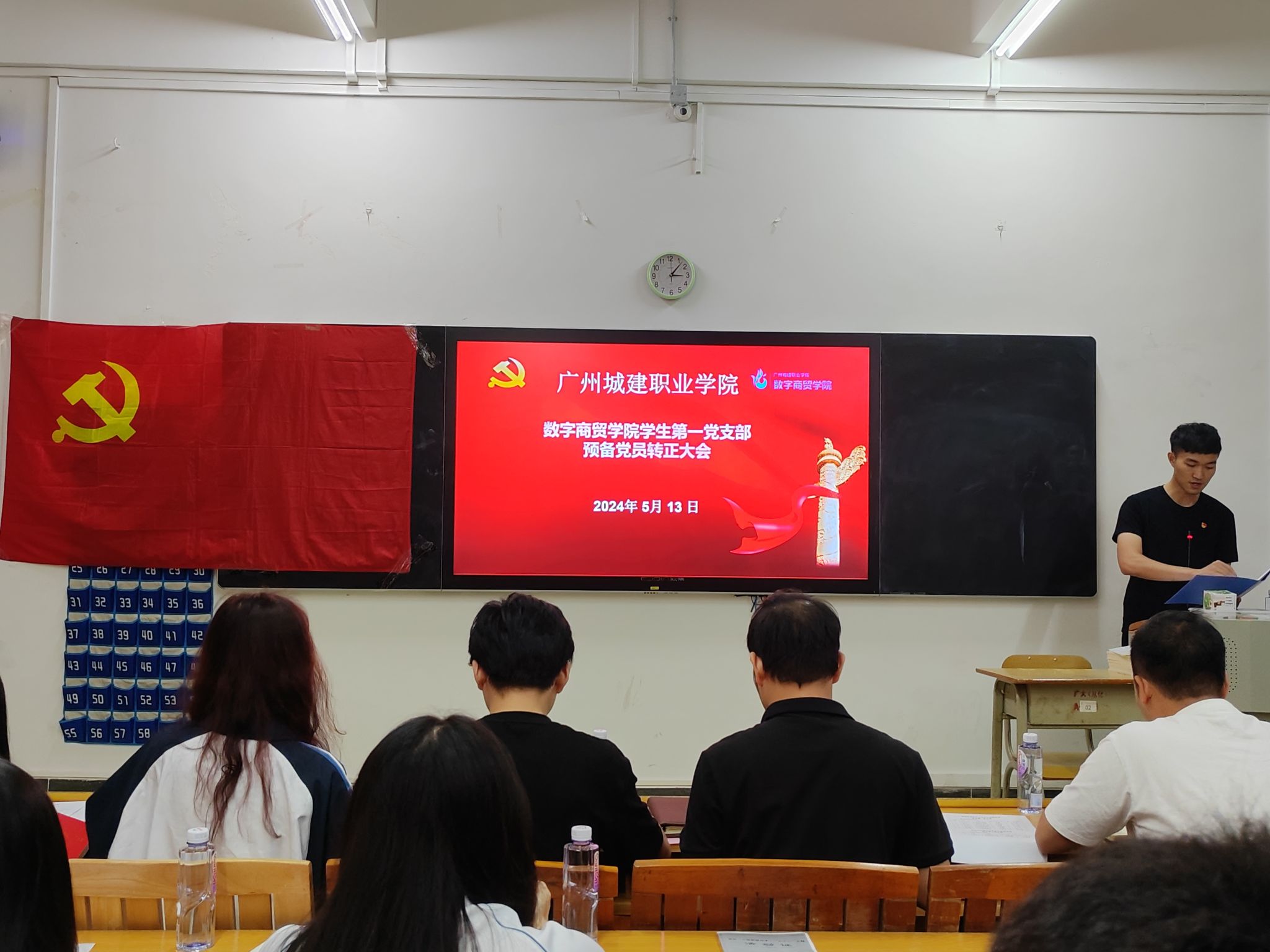 5月18日下午,数字商贸学院学生第一党支部在人文艺术楼1120教室召开2024年上半年预备党员转正式党员通表大会,大会讨论了张艺华等5名中共预备党员申请转为中共正式党员的相关事宜。学生第一党支部书记邹鹏主持会议,支部全体党员出席参加会议。