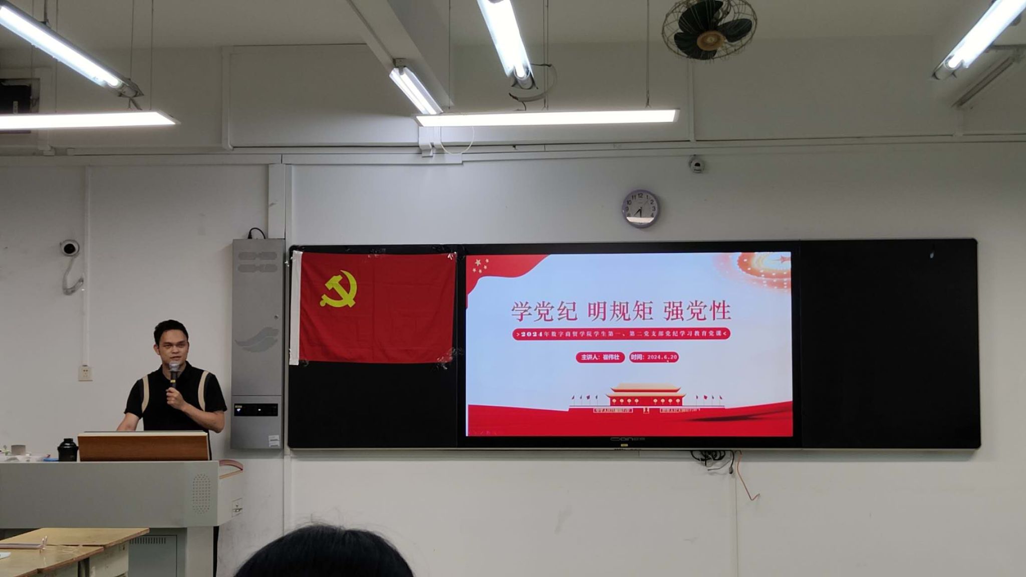 为了让党员们更加深入地学习和遵守党规党纪,2024年6月20日晚,数字商贸学院学生第一、第二党支部在人文艺术楼1206组织师生党员开展6月份党纪学习教育专题党课。本次党课学习由学院党建指导老师崔伟壮主讲。