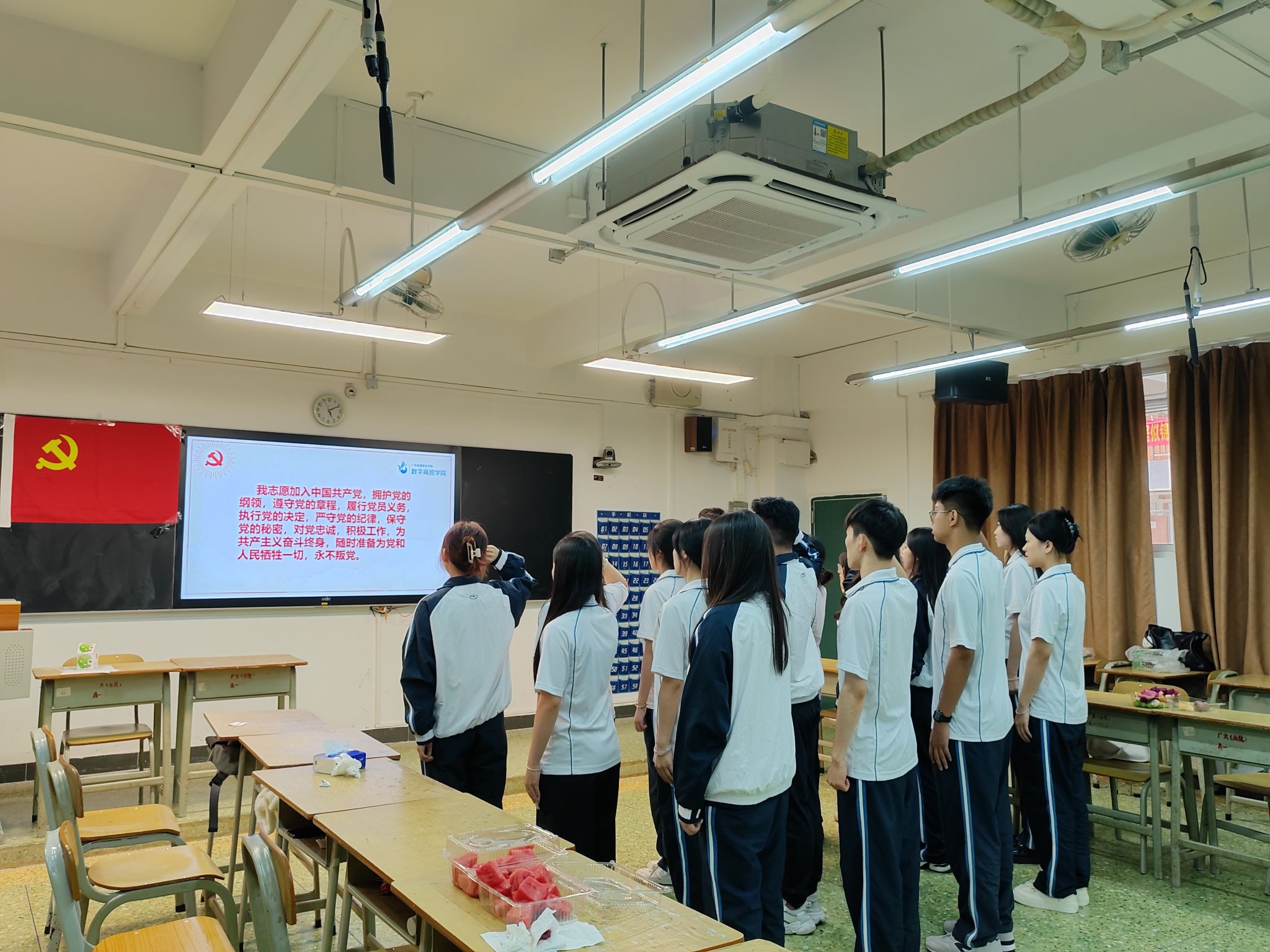 大会中,在邹鹏老师的领誓下,与会师生党员一起重温了入党誓词,入党誓词让党员们时刻将庄严而神圣的承诺铭记于心,时刻保持对党忠诚。