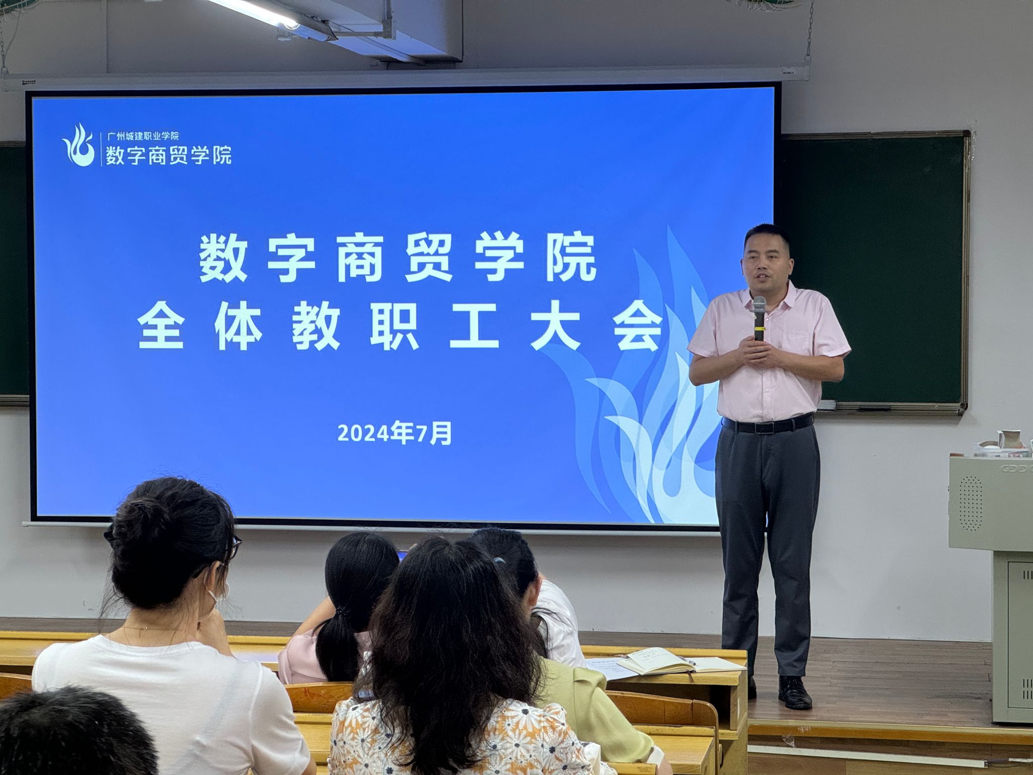 最后,赵团结提出了下学期的工作方向。他表示,下学期学院将进入双校区运行模式。他提到,新的学期、新的校区、新的机遇,新的发展,是学院基本的发展思路和发展策略,他希望全体教职工继续发扬和保持学院的光荣传统,为学院的发展群策群力,贡献自己的力量。他相信在全体教职工的共同努力下,数字商贸学院一定会迎来更加美好的明天。