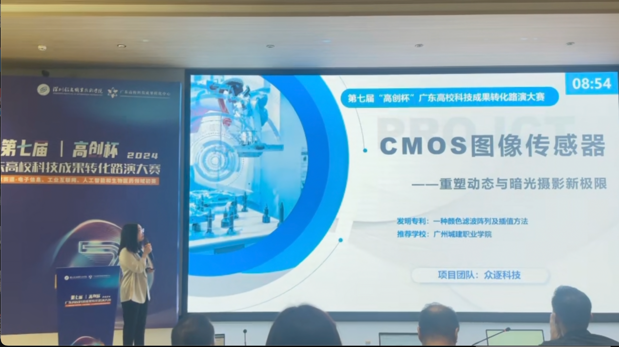 2024年9月4日,第7届“高创杯”广东高校科技成果转化路演大赛职教赛道初赛在深圳信息职业技术学院圆满落幕,由张秀婉、鲁五一、谢建军及陈兰兰老师领衔的教师团队凭借其项目《一种颜色滤波阵列的差值方法》,即CMOS图像传感器技术,以总分第三名的成绩荣获二等奖,成功晋级决赛。