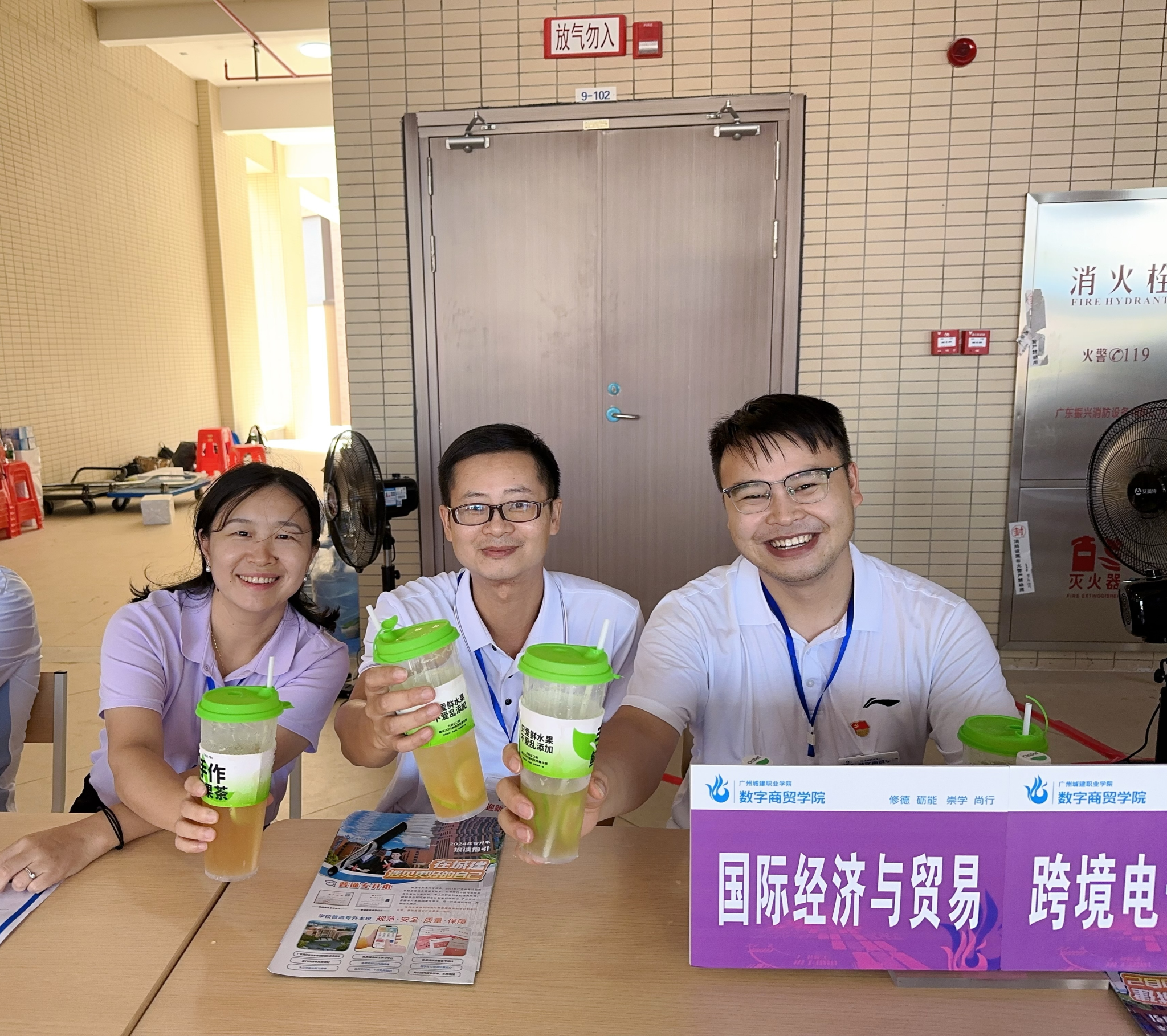 恰逢广州城建职业学院清远校区迎新,也是数字商贸学院迎接清远校区新生的重大日子。在这带着残夏的初秋,赵团结院长与教师们共同守在一线,并为在迎新工作一线的老师们安排了饮品,这不仅仅是对身体疲劳的缓解,更是对老师们辛勤工作和奉献精神的认可与赞扬,传递了对教师的深切慰问和对学生的热情欢迎。