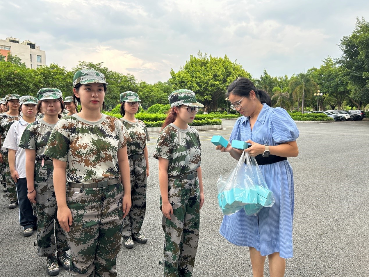 成惠慈主任则亲自为同学们分发月饼,她鼓励大家:“军训是大学生活的重要一课,它不仅锻炼了你们的体魄,更磨砺了你们的意志。希望大家能够珍惜这段时光,相互帮助,共同进步。”