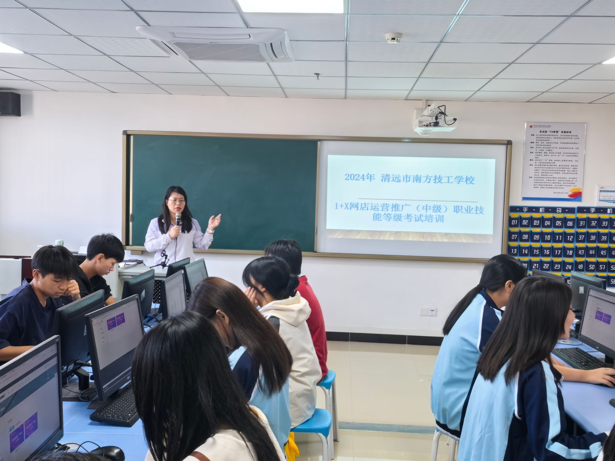 近日,为了更有效地推进教育部第三期供需对接就业育人项目中的“广州城建职业学院电子商务专业产教融合人才培养与实践”课题的核心目标,即深化“1+X”职业技能等级证书考点的建设。在11月2日至11月17日的周末时段,该项目的主持人邱丽娜携手核心成员伍倩莹和吴雄林老师组成的专业教学团队,受清远市南方技工学校的诚挚邀请,针对该校2024级电子商务专业的60余名学子,开展了“1+X网店运营推广”(中级)职业技能等级证书的专项考证培训。