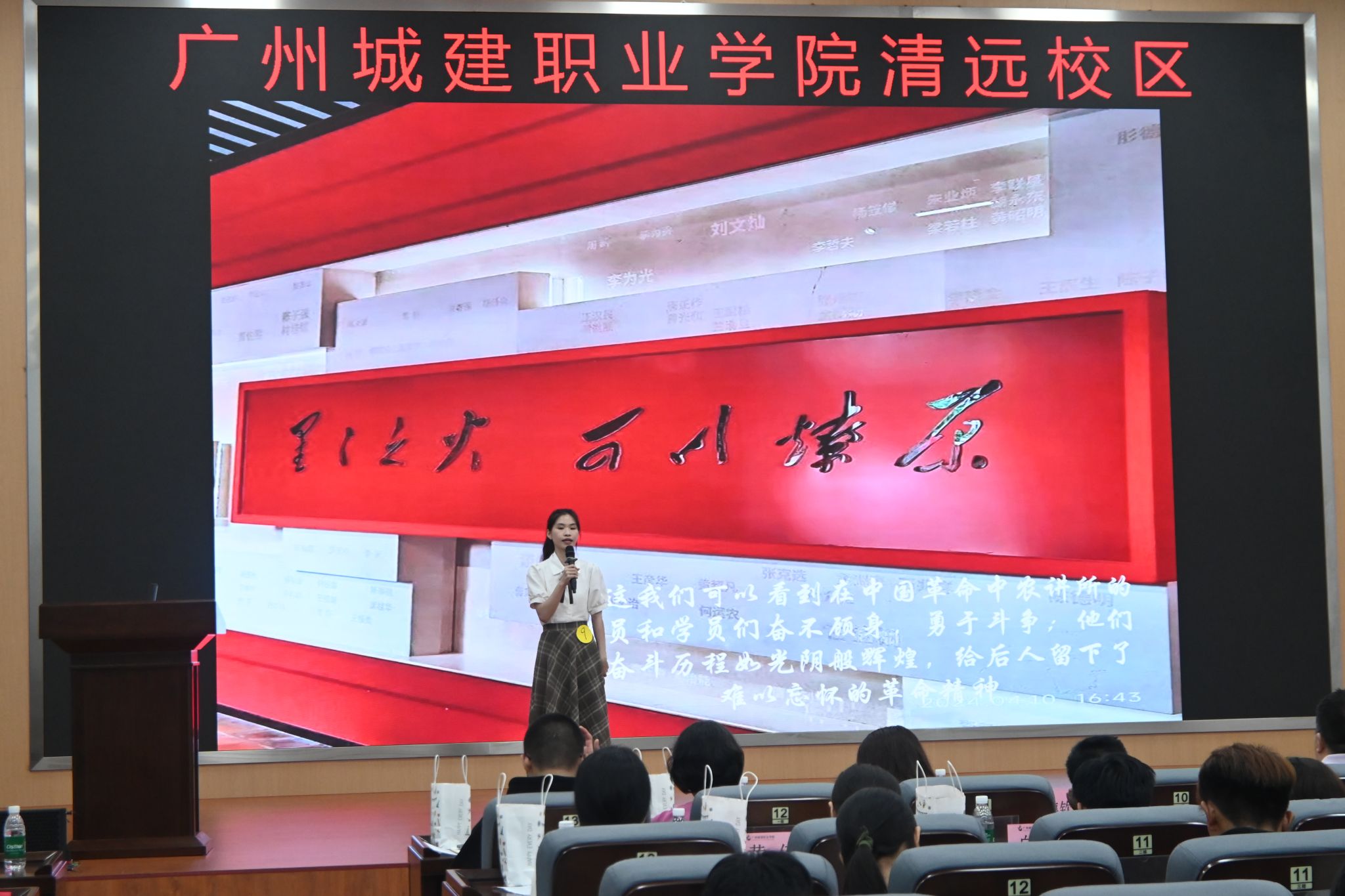 11月15日,由广州城建职业学院党委主办,数字商贸学院党委承办的“庆祝中华人民共和国成立75周年”红色旅游景点导游讲解大赛总决赛在清远校区图书馆414会议室圆满落幕。学院党委书记、院长赵团结、学院党委副书记、副院长邹超、学生处副处长曾德钦、学院会展与管理教研室主任冯倩欣以及各学院组织员、指导老师们出席了本次大赛。