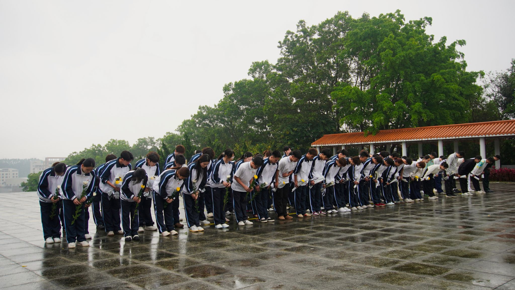 仪式在雄壮的《义勇军进行曲》中正式拉开帷幕,嘹亮的国歌声在陵园上空久久回荡,激荡着在场每一位师生的爱国情怀。歌声毕,全场肃立静默,全体师生向革命先烈集体默哀,深情缅怀为民族解放、国家富强、人民幸福英勇献身的革命先辈,致以最崇高的敬意,追思先烈们不畏牺牲、无私奉献的崇高精神,更加深刻感悟今日幸福生活的来之不易。
