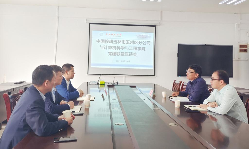 为深入学习贯彻党的二十大精神,充分发挥党建引领作用,3月15日,中国移动玉林城区分公司与计算机科学与工程学院于我校东校区厚德楼2-401会议室召开党建联建交流座谈会。我院党委书记方琨、党委副书记兼副院长黄潮出席本次活动。