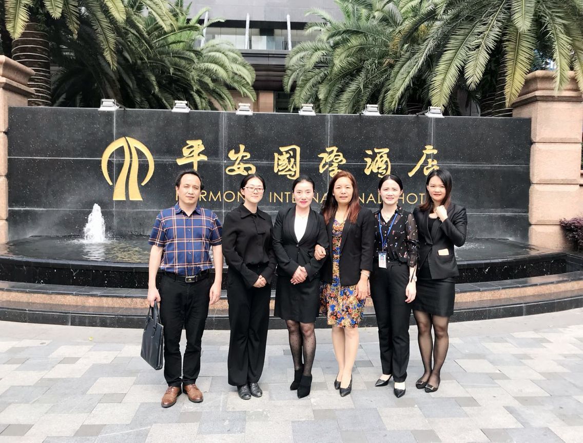 5月15日,外语外贸学院副院长李霜,旅游与小语种教研室副主任袁其玲前往深圳平安国际大酒店实地考察调研,洽谈校企合作,受到了该公司人力资源总监傅红、市场传媒经理黄美琼和人事行政主管刘彩欣的热情接待。