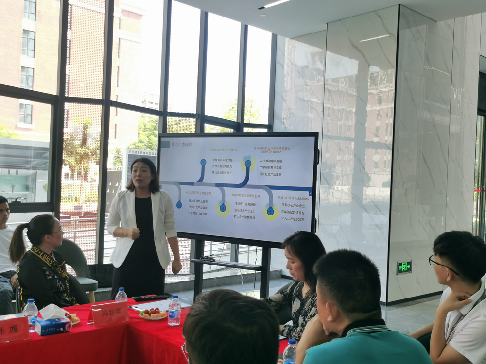 她介绍到松山湖高新技术产业园区经过20多年发展,目前拥有优美的绿色生态环境、一流的现代办公大楼、配套的宿舍、食堂等基础设施,完全满足跨境电商运营、自媒体营销等数字贸易产学研一体化基地的建设需求;同时,产业园区也得到东莞市人民政府的高度重视,拥有各项政策与资金支持,正处于快速发展、求才若渴的黄金时期。在这样的契机下,正想通过校企合作,建立深度融合的产学研基地,能够将高校的人才优势转化为行业的经济产能,配合以完善的供应链系统,就能实现高新技术园区与学校的快速发展,开拓合作双赢新局面。