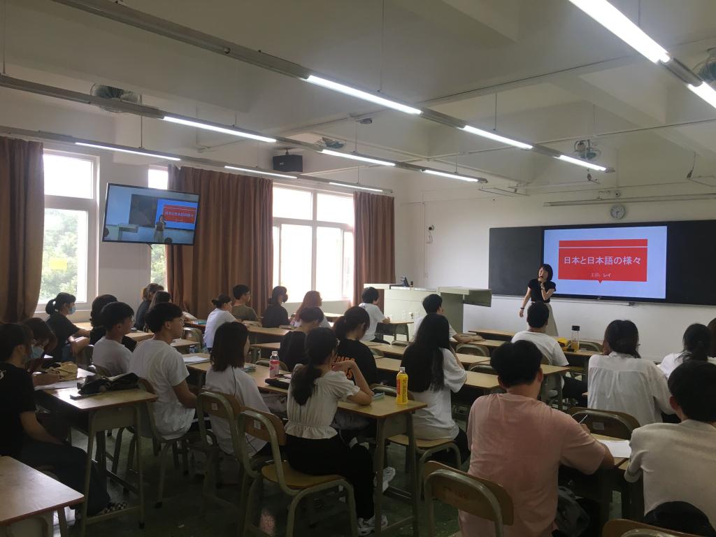 活动在学生们轮流用日语做自我介绍中拉开序幕。黎明从跨文化交流的角度来和学生们分享了自己在日本留学期间感受到的中日文化差异和日语表达中的一些有趣的现象。她以设问的方式积极引导学生进行思考,鼓励他们用日语进行交流沟通,学生们在她的引导下也慢慢开口说出了自己的看法,摆脱了一些同学一直以来哑巴日语的窘境,活动在一片欢声笑语中慢慢落下帷幕。