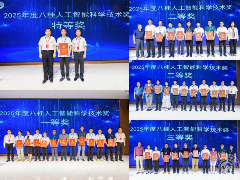 会议还表彰了2025年度八桂人工智能科学技术奖获得者,《缆索桥梁AI检养机器人及智能检养平台研发》等57项科技成果获奖。