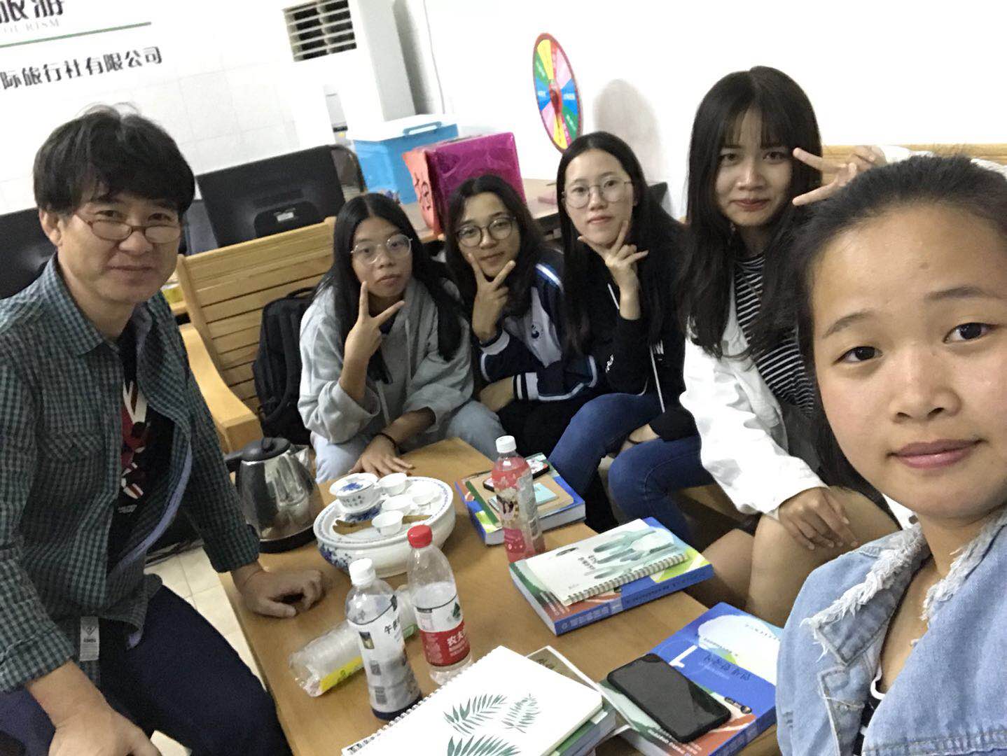 活动中,同学们首先用韩语介绍自己的名字与爱好,向金教授虚心请教韩语学习中所遇到的问题和韩国的风俗礼仪、人文历史等各方面问题,面对热情的同学们,金教授非常兴奋,对同学们的提问一一回答,金教授用风趣的语言向同学们描述了他眼中的韩国,让同学们忍俊不禁。金教授指出,在中国他深切体会到不同文化的差异,文化的交融和碰撞也让他受益匪浅,之后金教授还带领同学们对韩国饮食文化进行了小组讨论,在他的引导下,同学们对自己所了解到的韩国料理与餐桌礼仪进行热烈讨论,在轻松的氛围中,同学们逐渐能用韩语畅所欲言。