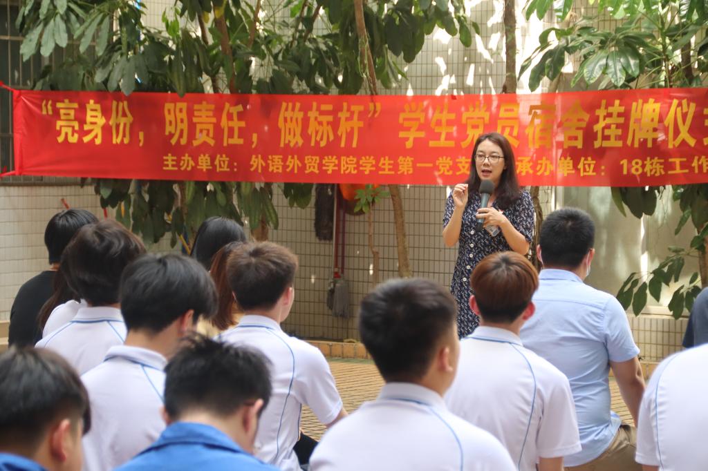 刘榕敏强调,全体同学应通过学生党员宿舍挂牌活动直面党员的担当和责任,在学习、工作与生活各方面切实发挥党员的先锋模范作用。此外,她对学生党员还做了以下要求:一是要大胆亮身份,明责任,做标杆,实行党员责任社区网格化;二是要加强学习,不断增强本领;三是要时刻以党员标准严格要求自己,自觉接受监督,践行全心全意为人民服务的宗旨。