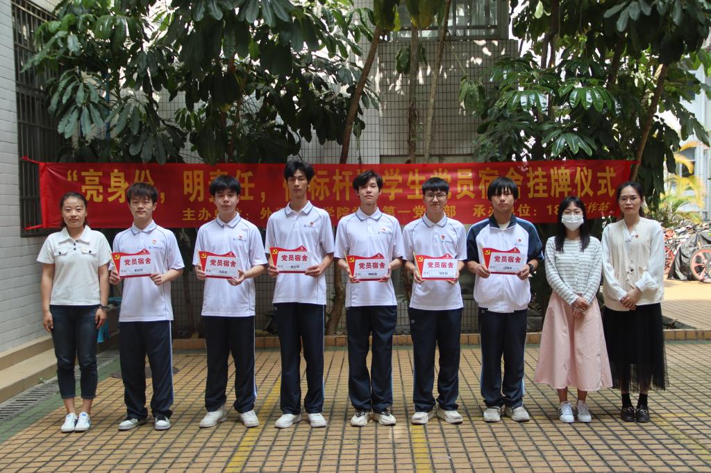 全体老师为现场学生党员授予党员宿舍标牌。紧接着,全体师生党员面向党旗集体重温入党誓词。启动仪式结束后,全体老师共同为学生党员宿舍代表挂牌。