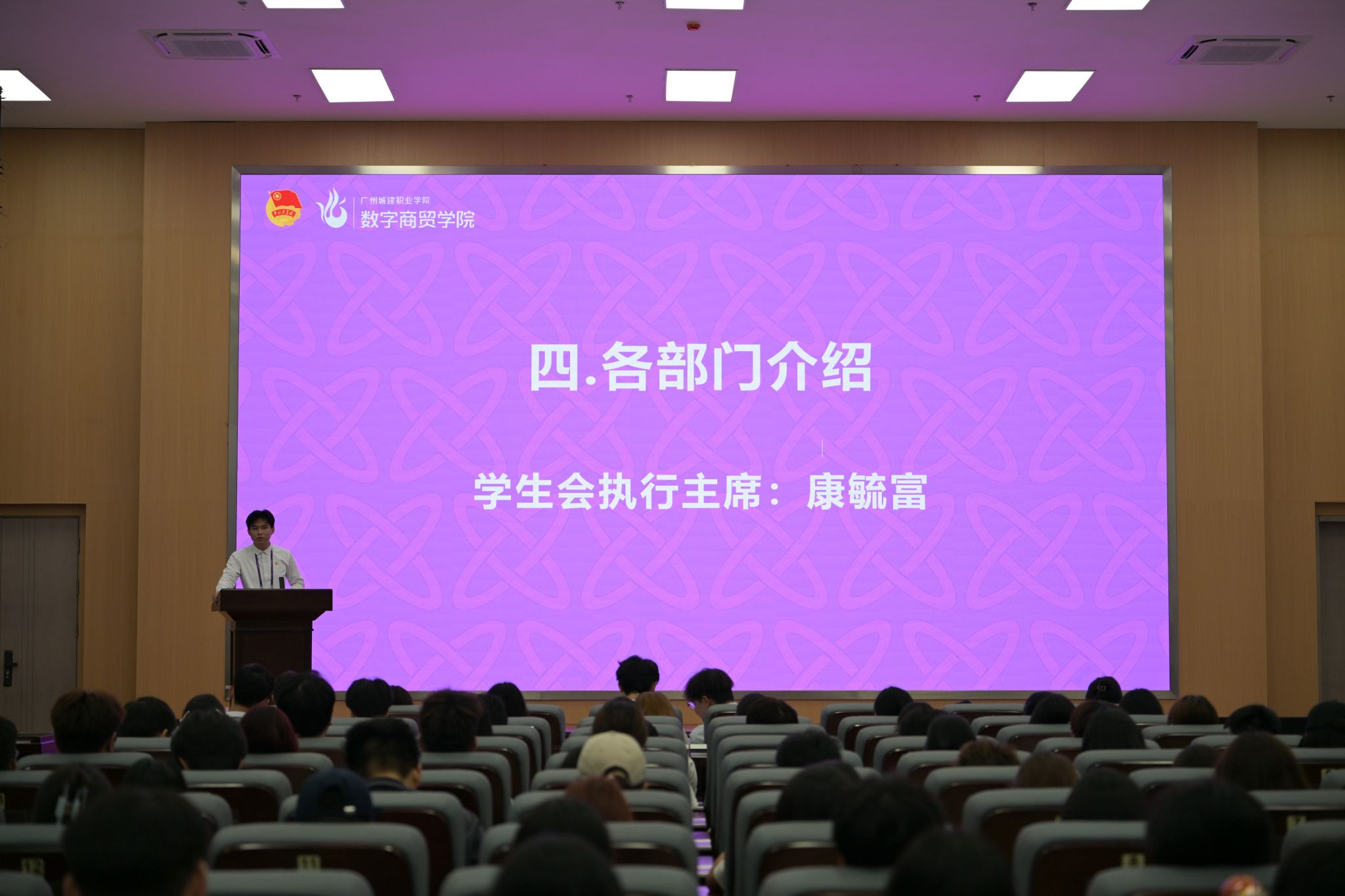 团委兼职学生副书记郑树茂围绕“坚定理想信念,勇担时代使命”开展思政分享,推动行为规范与价值引领深度融合,要求新干事严守纪律、筑牢信仰根基,传承五四精神,在服务同学中践行青春使命,实现个人成长与组织发展同频共振。学生会执行主席康毓富清晰介绍团委学生会各部门架构、职能、常规工作及活动安排,帮助新干事全面理解组织运作及部门协作关系。