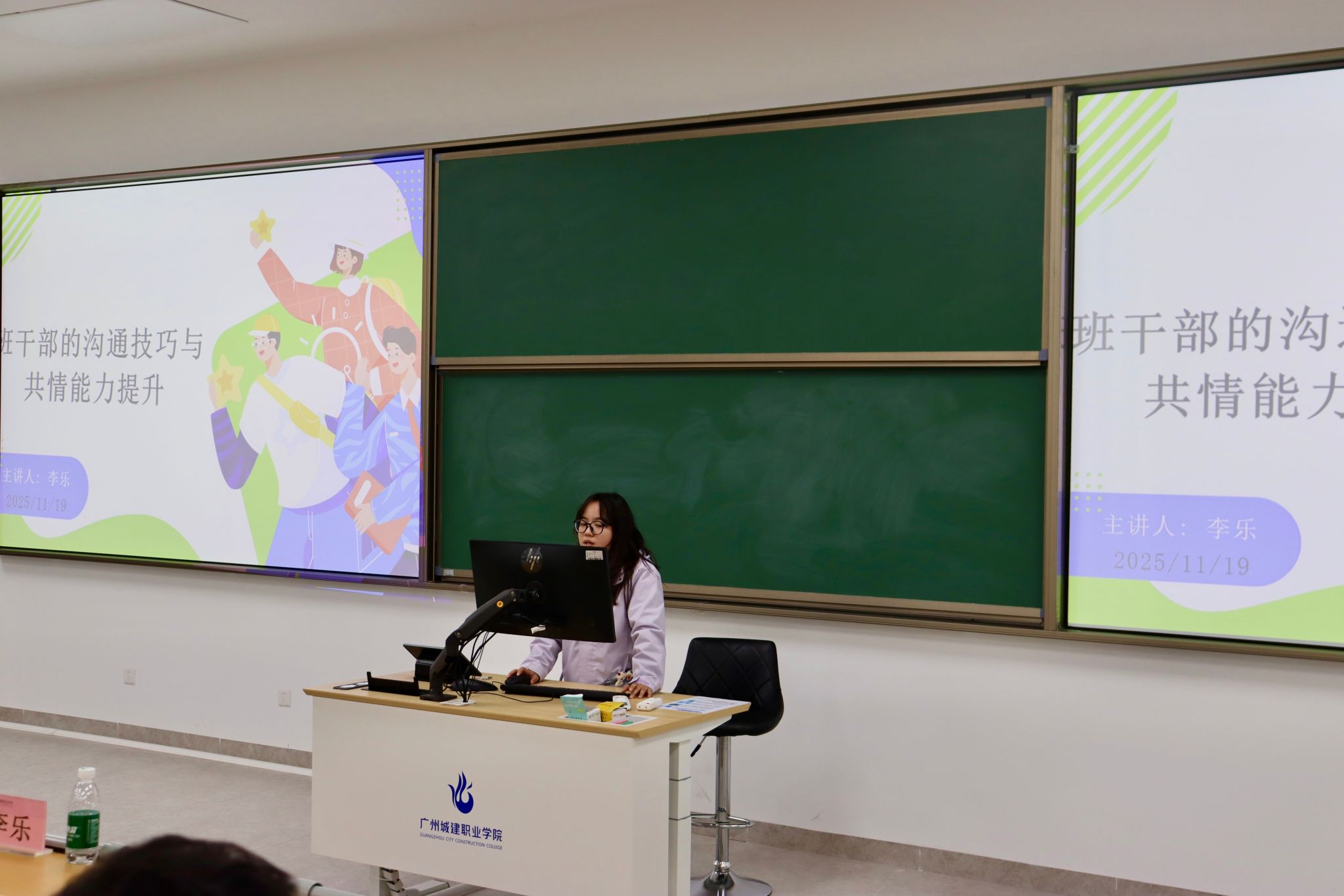 李乐老师以心理沟通与共情能力为切入点,讲解如何在班级管理中进行有效表达,通过积极倾听了解同学需求与情绪反馈,进一步提升班干部的人际沟通与支持陪伴能力。