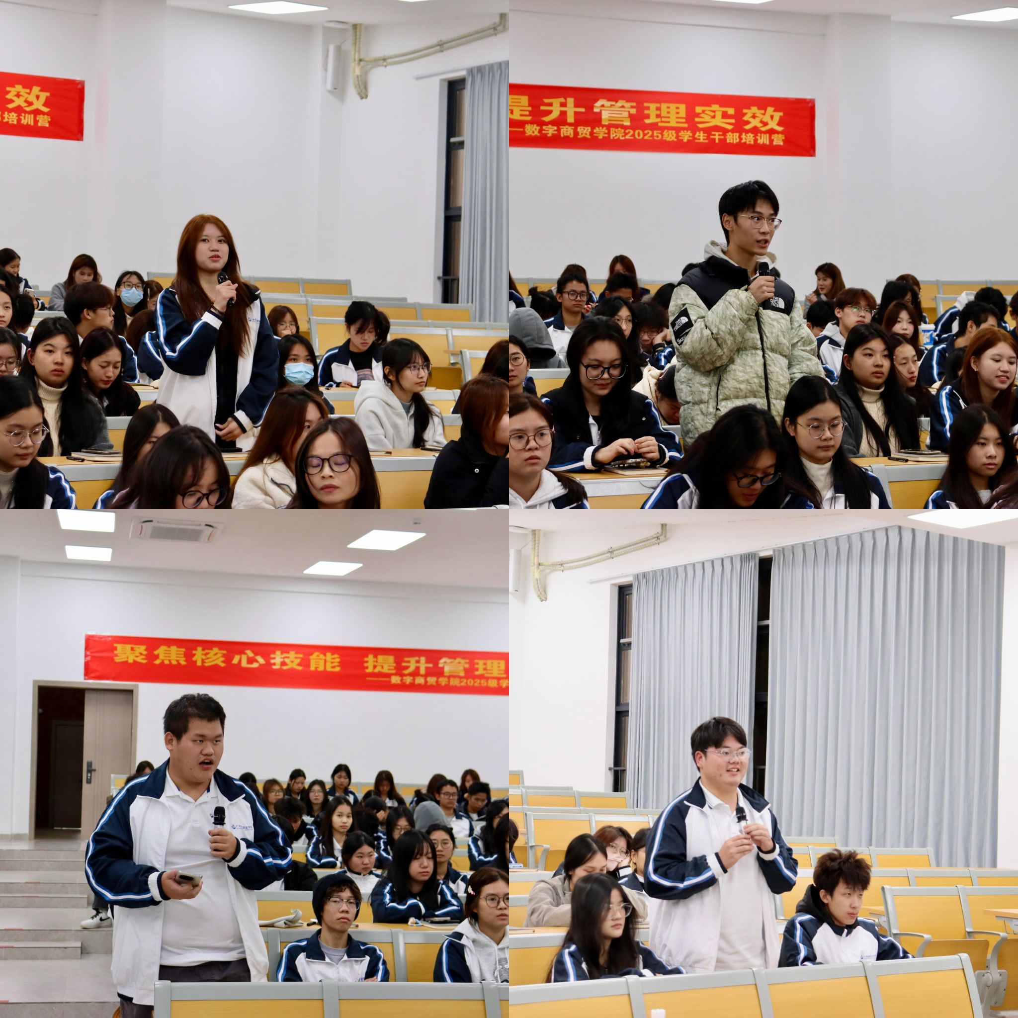 在专题讲座现场,班委们积极与培训老师互动交流,围绕实际管理中遇到的疑难问题展开探讨。现场氛围热烈而富有思辨性,学生们主动提问、深入交流,展现出良好的学习态度与思考能力。通过面对面的互动,班干部进一步加深了对责任分工、时间管理和沟通技巧等内容的理解,实现了理论与实践的紧密结合。