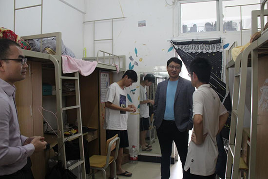 活动伊始,方琨带领排查成员逐一对我院学生宿舍进行检查,重点围绕对学生宿舍存在的安全隐患问题展开排查。在检查过程中,方琨就宿舍卫生环境的重要性进行强调,对宿舍卫生不足之处提出改进建议。他询问学生学习生活情况,嘱咐学生要团结友爱,并希望学生能够提高营造良好宿舍卫生环境、维护宿舍安全的意识。