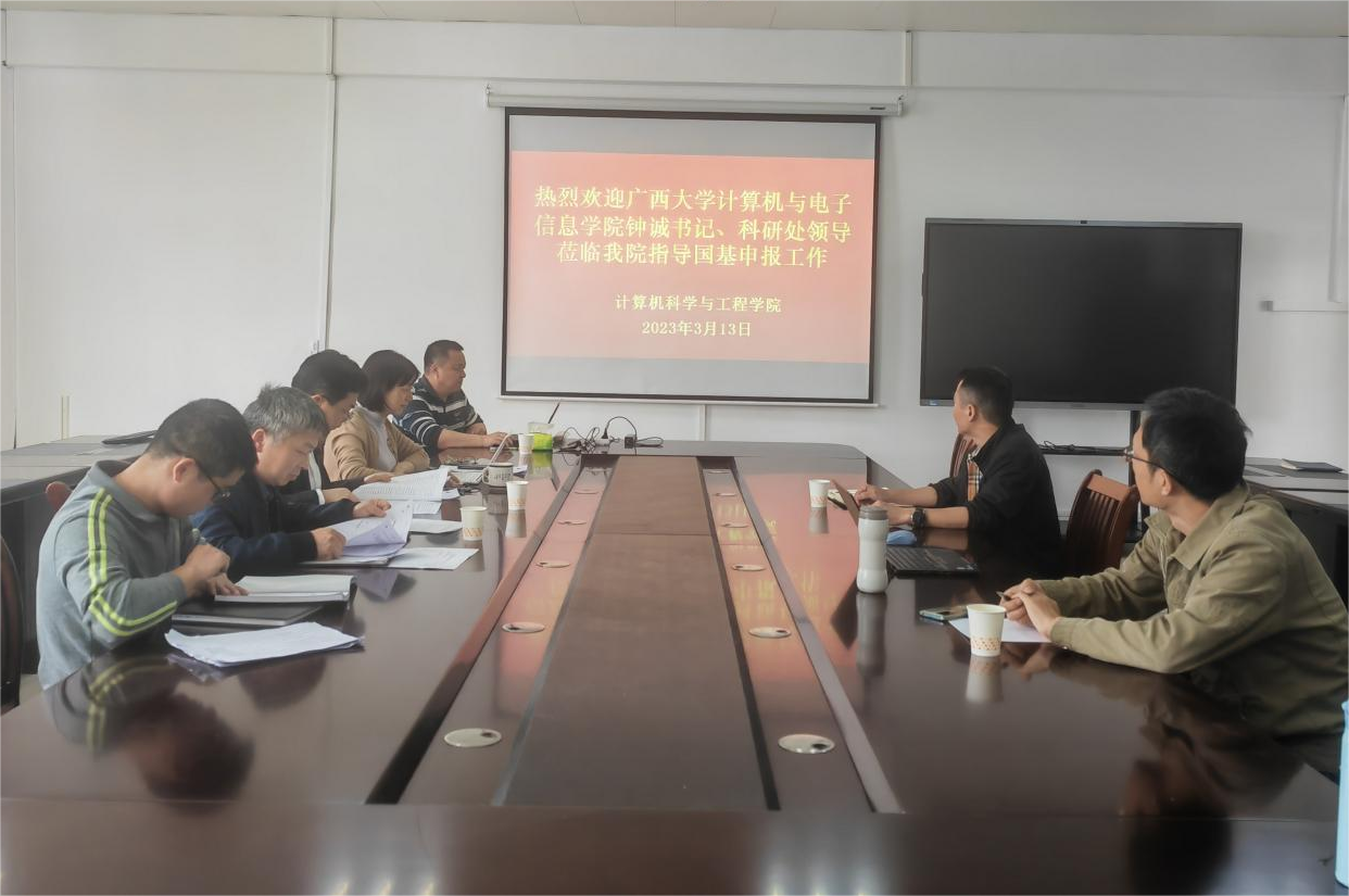 为做好2023年国家自然科学基金项目申报工作,3月13日下午,学院在我校东校区厚德楼2—401召开国基申报指导会,广西大学计算机与电子信息学院党委书记钟诚、我校科研处副处长田欢欢受邀参加我院国基项目申报指导会议。我院院长朱晓姝,副院长张远夏以及多位申请项目的教师参加此次指导会。