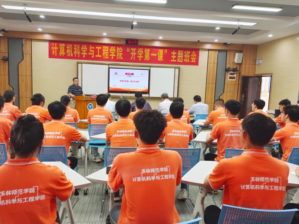 学生工作部(处)部(处)长杨潇,我院党委书记方琨、党委副书记兼副院长黄潮、专职组织员、团委书记以及计算机2021班全体学生参加此次班会。(作者/黄文芳 覃菲菲 黄新弟 蒙艳萍)