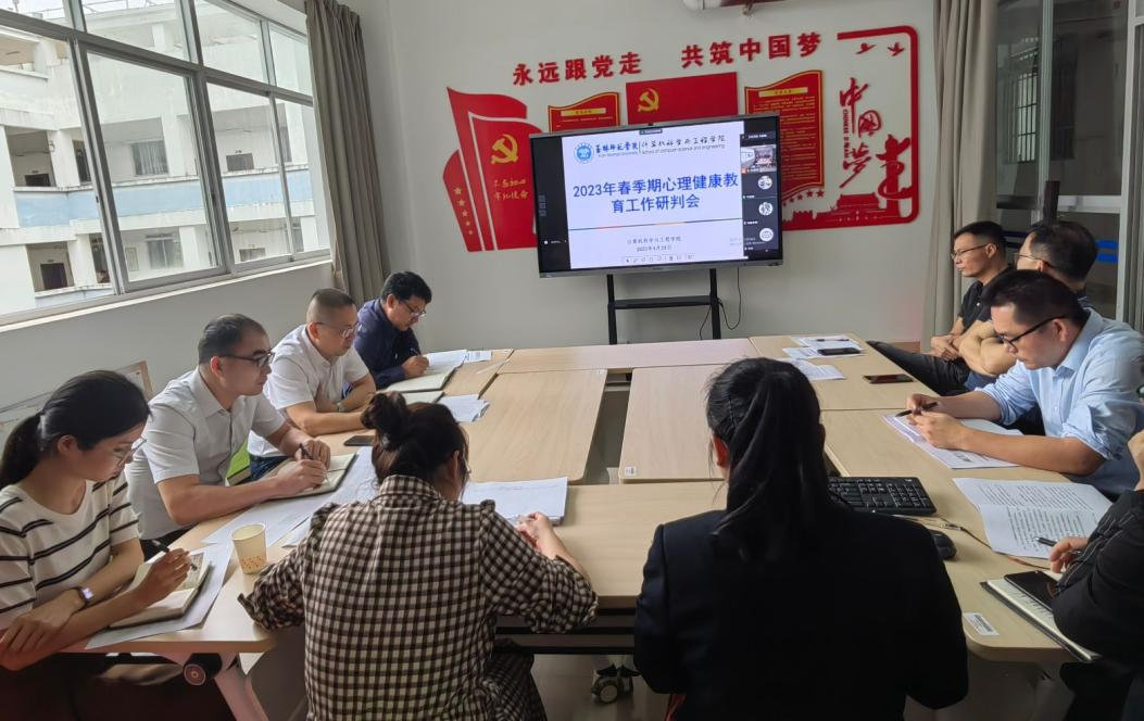 4月24号下午,我院于我校东校区厚德楼党员活动室召开2023年春季期心理健康教育工作研判会,会议分线下和线上形式同步进行。我院党委书记方琨、副院长陈佐瓒(主持行政全面工作)、校心理咨询中心黄娇以及我院辅导员、全体班主任参加此次会议。会议由我院党委副书记兼副院长黄潮主持。