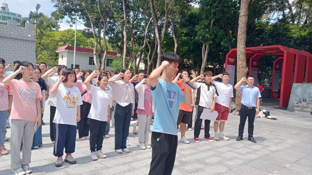 为全面贯彻落实党的二十大精神和党中央重大决策部署,推动学习贯彻习近平新时代中国特色社会主义思想主题教育走深走实,牢牢把握“学思想、强党性、重实践、建新功”的总要求,对大学生党员进一步筑牢国家安全观,厚植家国情怀,6月3日,我院学生第二党支部书记莫文锋带领学生党员、发展对象、入党积极分子赴玉林市国防教育园开展“筑牢国家安全观 厚植家国情怀”主题党日活动。