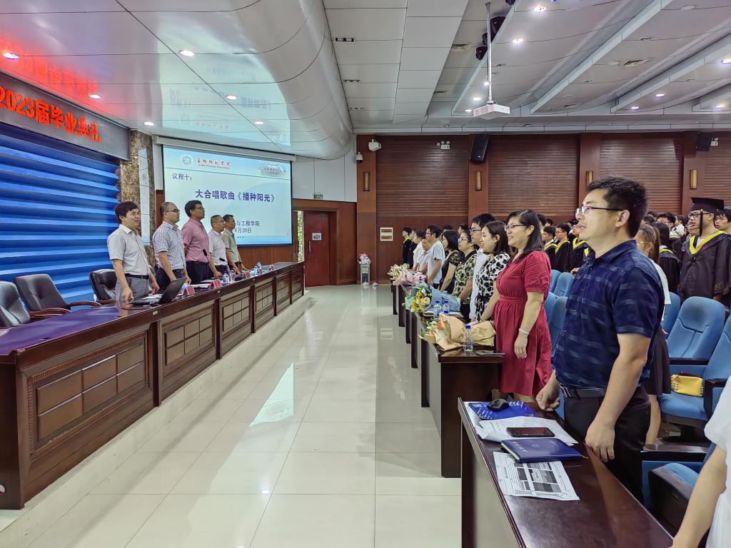 紧接着,陈佐瓒发言,回顾了毕业生们在校期间的成长历程以及所取得的荣誉和成绩。同时他也给即将离校的毕业生送上了最美好的祝福,一是向真而行,二是向新而行,三是向美而行,深情地激励毕业生要有信心,有勇气,有担当去开创人生新篇章,真正做到以诚待人、踏实工作、自信自强、创新立业。最后,毕业生们全体起立,再一次合唱校歌《播种阳光》,为毕业典礼划上了一个圆满的句号典礼现场。