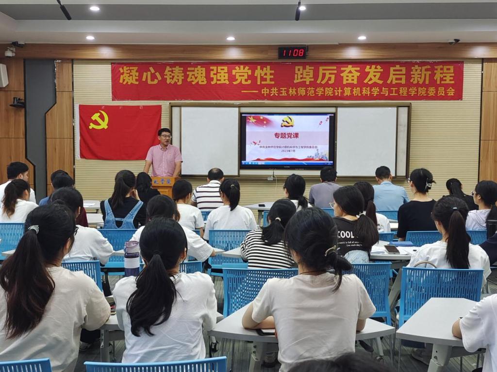 我院党委立足铸魂育人,把学懂弄通做实习近平新时代中国特色社会主义思想作为首要政治任务。在专题党课上,我院党委书记方琨指出,今年是全面贯彻落实党的二十大精神的开局之年,也是深入开展学习贯彻习近平新时代中国特色社会主义思想主题教育的时候,大家要深刻领悟“两个确立”的决定性意义,增强“四个意识”、坚定“四个自信”、做到“两个维护”。他表示,国家进入新发展阶段,以推动高质量发展为主题,必须大力发展科技生产力,充分涵养人才第一资源,努力激发创新第一动力。作为我院的学生党员,更要抓住机遇,迎接挑战,在全面建设社会主义现代化国家中彰显自己的使命和担当,为学校建成“国内知名、区内领先,以教师教育为特色的高水平地方应用型大学”贡献青春力量。他对同学们提出希望:一是要提高政治站位,做到“真学”;二要珍惜学习机会,做到“深悟”;三要联系学习实际,做到“实干”。