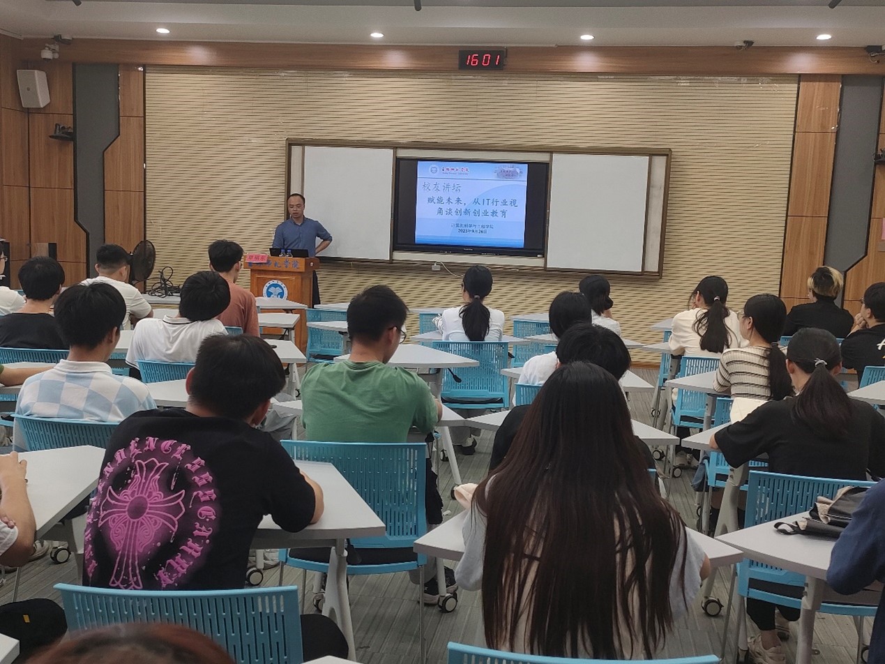 9月26日下午,我院于学校东校区厚德1501教室举行了题为“赋能未来,从IT行业视角谈创新创业教育”的校友讲坛活动。讲座由我院2009级校友覃福东主讲,我院软件工程专业学生参加此次讲坛。