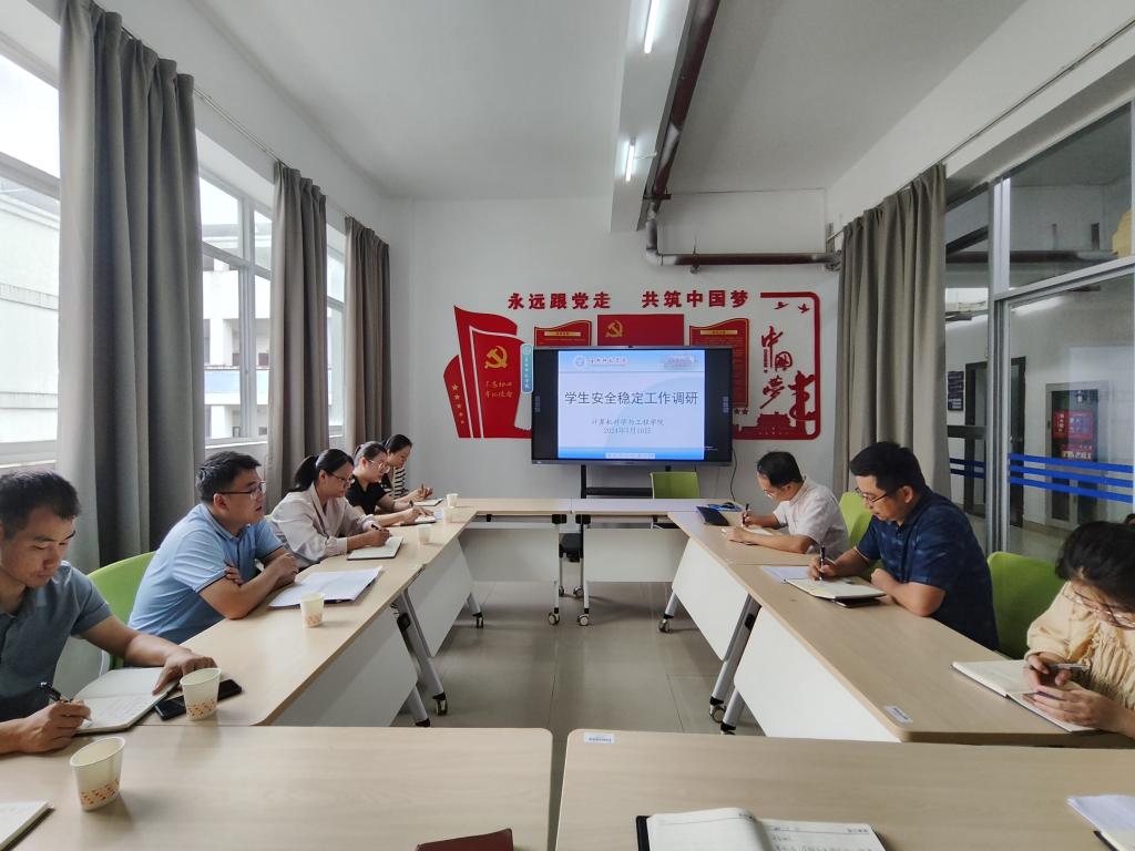 杨潇认真听取汇报,充分肯定我院的学生安全稳定工作,并就毕业季学生安全稳定工作提出意见建议,并强调:一是提高政治站位,强化责任意识,健全常态化管理机制,常态化开展风险隐患排查;二是要聚焦重点,聚力关键,抓实抓细学生工作;三是要严慈相济,加强帮扶,发挥全员育人作用;四是要建好队伍,团结协作,凝心聚力推进学生工作。