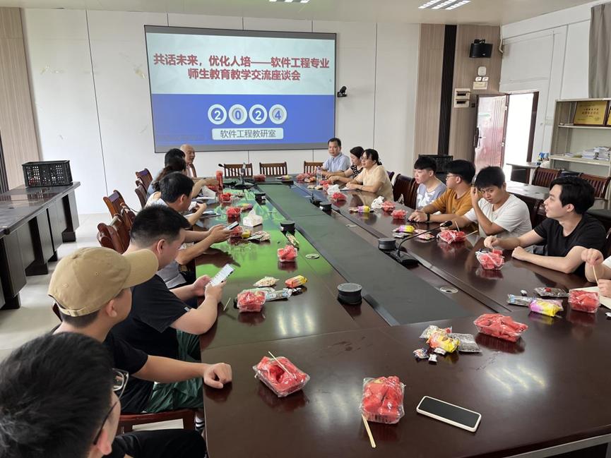 6月18日下午,我院2024版软件工程专业人才培养方案修订在校生“共话未来,优化人培”的主题座谈会在厚德楼2-401会议室召开。会议由软件工程教研室主任肖志军主持,软件工程教研室全体教师及软件工程2020级毕业班、2021级和2022级的学生代表参会。
