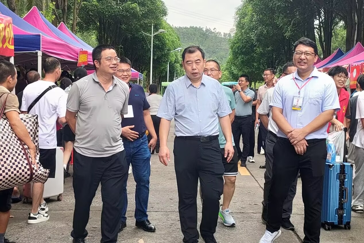 学校校长李伟中,党委副书记韦广雄与各职能部门负责人莅临我院新生接待点检查指导,了解新生报到情况。