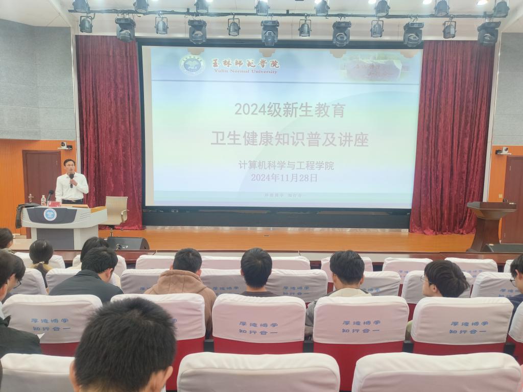 为进一步提高我院2024级新生的卫生健康安全意识,加强自我的防护能力,11月28日下午,我院在图书馆一楼视听馆成功举办“2024级新生教育卫生健康知识普及”专题讲座。讲座由我院辅导员何欢欢老师主持,校医院医生李梦袍博士主讲。