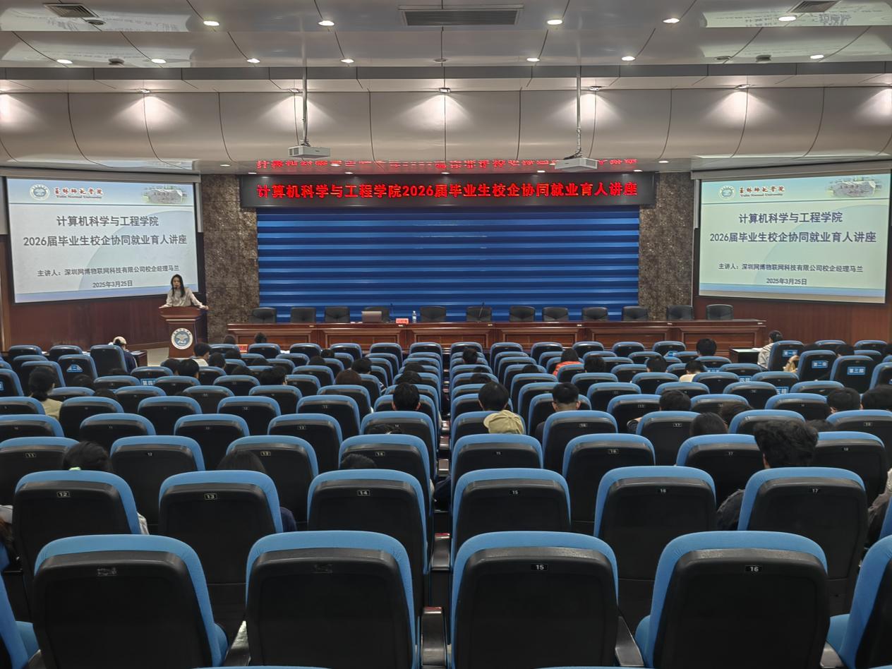 为进一步加强校企合作,深化产教融合,为毕业生提供高质量的就业指导服务,3月25日下午,我院于我校东校区学术报告厅举行2026届毕业生校企协同就业育人讲座。本次讲座由深圳网博物联网科技有限公司校企经理马兰主讲,我院2022级、2024级计算机专升本专业学生参加。