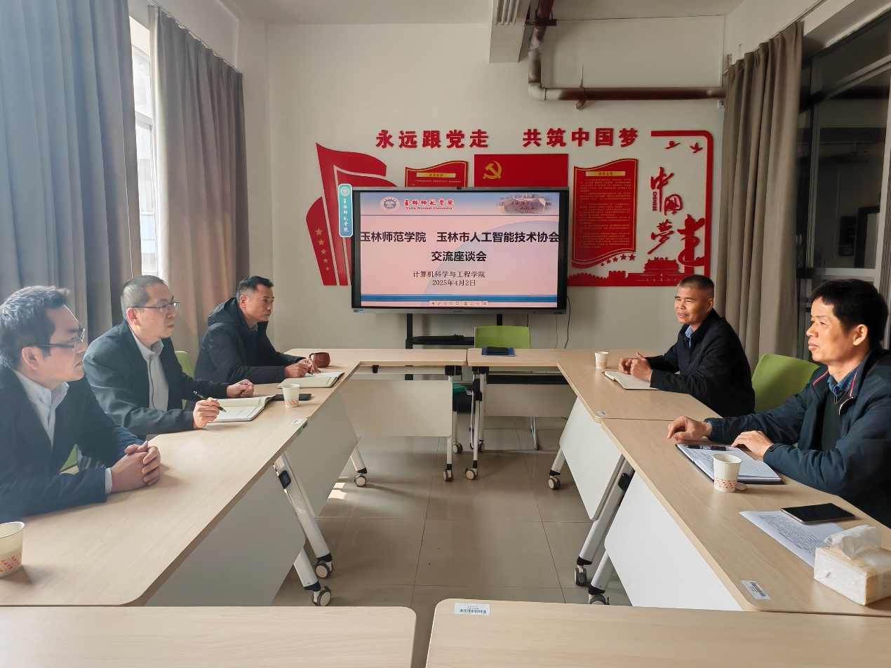 4月2日上午,我院与玉林市人工智能技术协会党支部书记、执行秘书长刘明远以及玉林市工商联秘书长黄树明在我校厚德楼党员E站开展交流座谈会,共探合作新方向,谋求共同发展新路径。我院院长陈佐瓒,副院长张远夏出席座谈会。