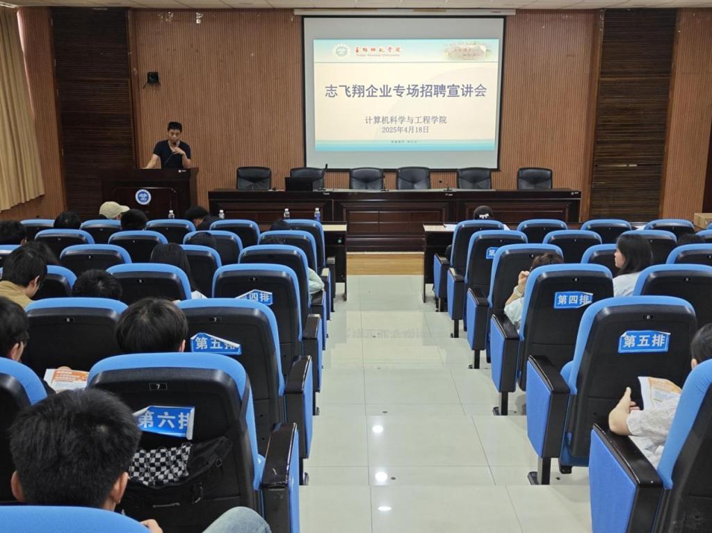 2025年4月18日下午,为促进学生充分就业,我院联合志飞翔企业,在我校东校区知行楼302博士论坛成功举办了专场招聘宣讲会,我院2025届毕业班同学参加。