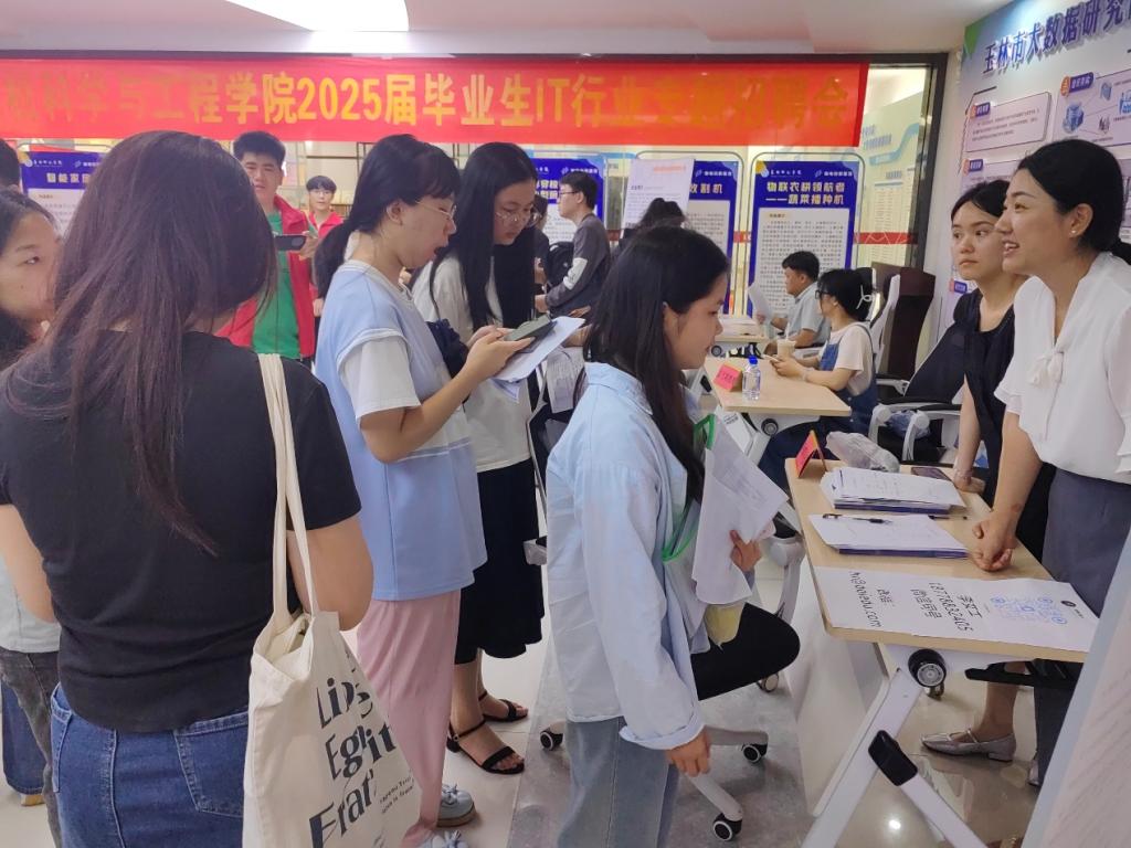 本次双选会面向学院2025届、2026届毕业生,吸引了多家区内外IT信息企业参与。双选会现场气氛热烈,各展位前人头攒动。毕业生们手持精心准备的简历,积极与招聘单位交流,主动了解岗位需求、发展前景等信息,用人单位耐心解答疑问,介绍企业优势与招聘计划,对学生的专业素养和实践能力给予高度关注。
