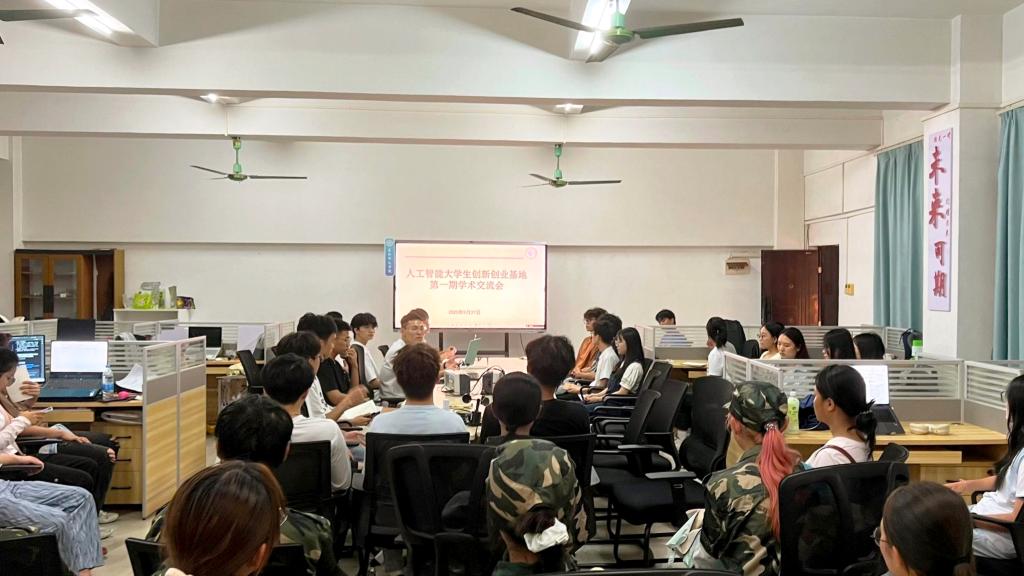 在我院党委指导下,人工智能功能型党支部与人工智能大学生创新创业基地于9月27日举办第一期学术交流会。活动由人工智能功能型党支部支委、基地指导老师韦善于主持。交流会面向全校开放,现场座无虚席,共有50余位同学参加此次交流活动。