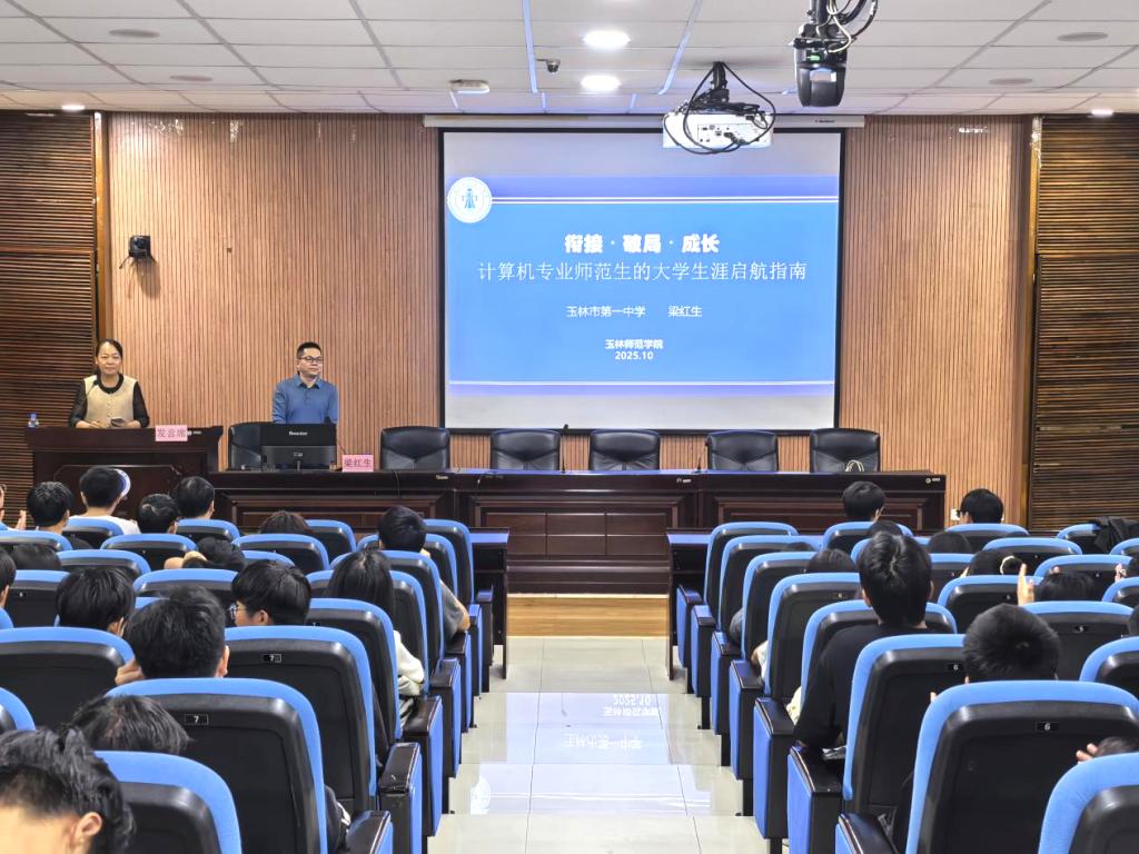 10月30日晚,知行讲堂第一讲“衔接・破局・成长:计算机专业师范生的大学生涯启航指南”于我校东校区博士论坛顺利开讲。本次讲座特邀玉林市第一中学信息技术高级教师梁红生担任主讲人,我院计算机师范专业25级新生参加此次讲座。