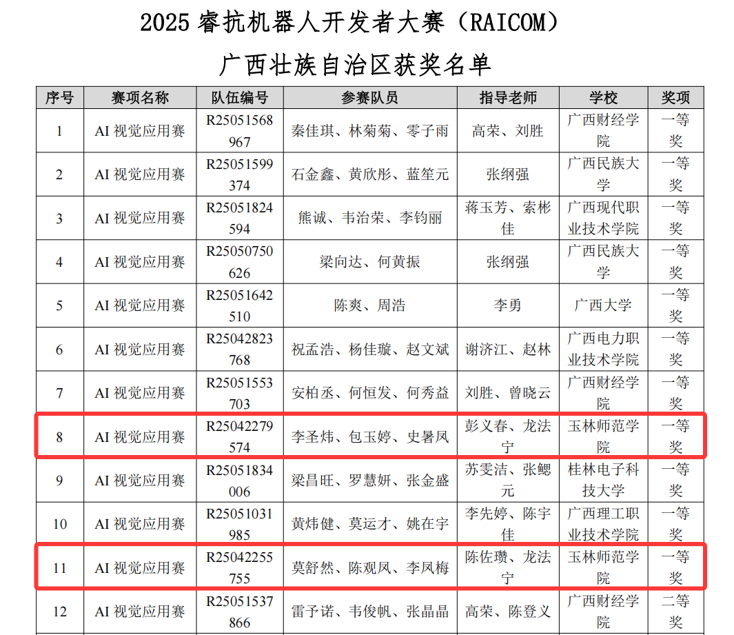 近日,2025睿抗机器人开发者大赛(RAICOM)全国总决赛在深圳技术大学圆满落幕。我院学子凭借出色的创新设计、扎实的技术功底和稳定的发挥,在与全国顶尖高校队伍的激烈角逐中脱颖而出,荣获全国总决赛一等奖1项、二等奖2项、三等奖2项的优异成绩。
