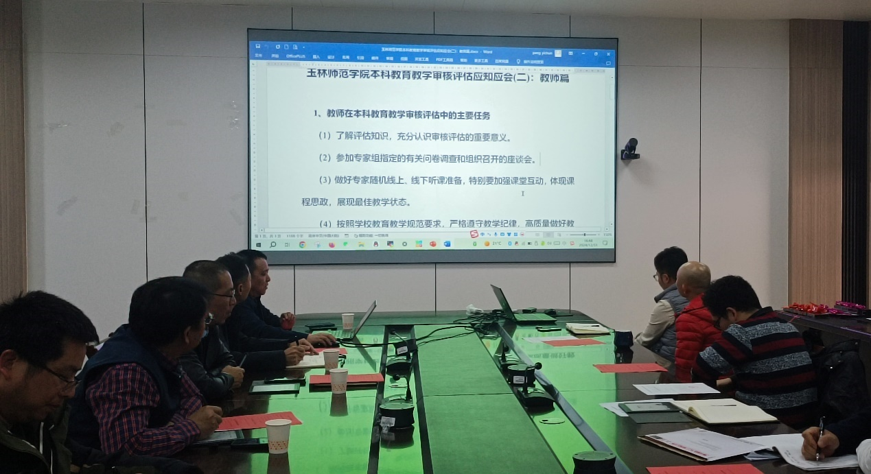 会上,彭义春带领全体教师认真学习了《伟德国际1946本科教育教学审核评估应知应会(二):教师篇》,他详细阐述教师在本科教育教学审核评估中的工作要点;他要求每位教师须明确工作方向和深入领会自己的角色与责任;他强调,课堂教学管理是本科教育教学审核评估中的重点内容,要以审核评估为契机,进一步加强课堂教学管理,规范课堂教学行为;同时,要结合教学管理相关文件,按照课堂教学出现的问题进行及时整改,将工作真正落实到实处。