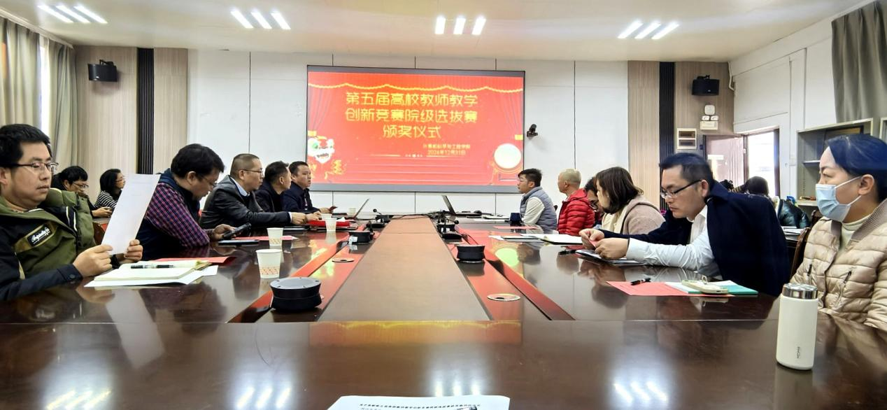 12月31日,我院于厚德2401会议室举办第五届高校教师教学创新竞赛院级选拔赛颁奖仪式,学院全体领导班子及教职工参加,仪式由学院副院长彭义春主持。